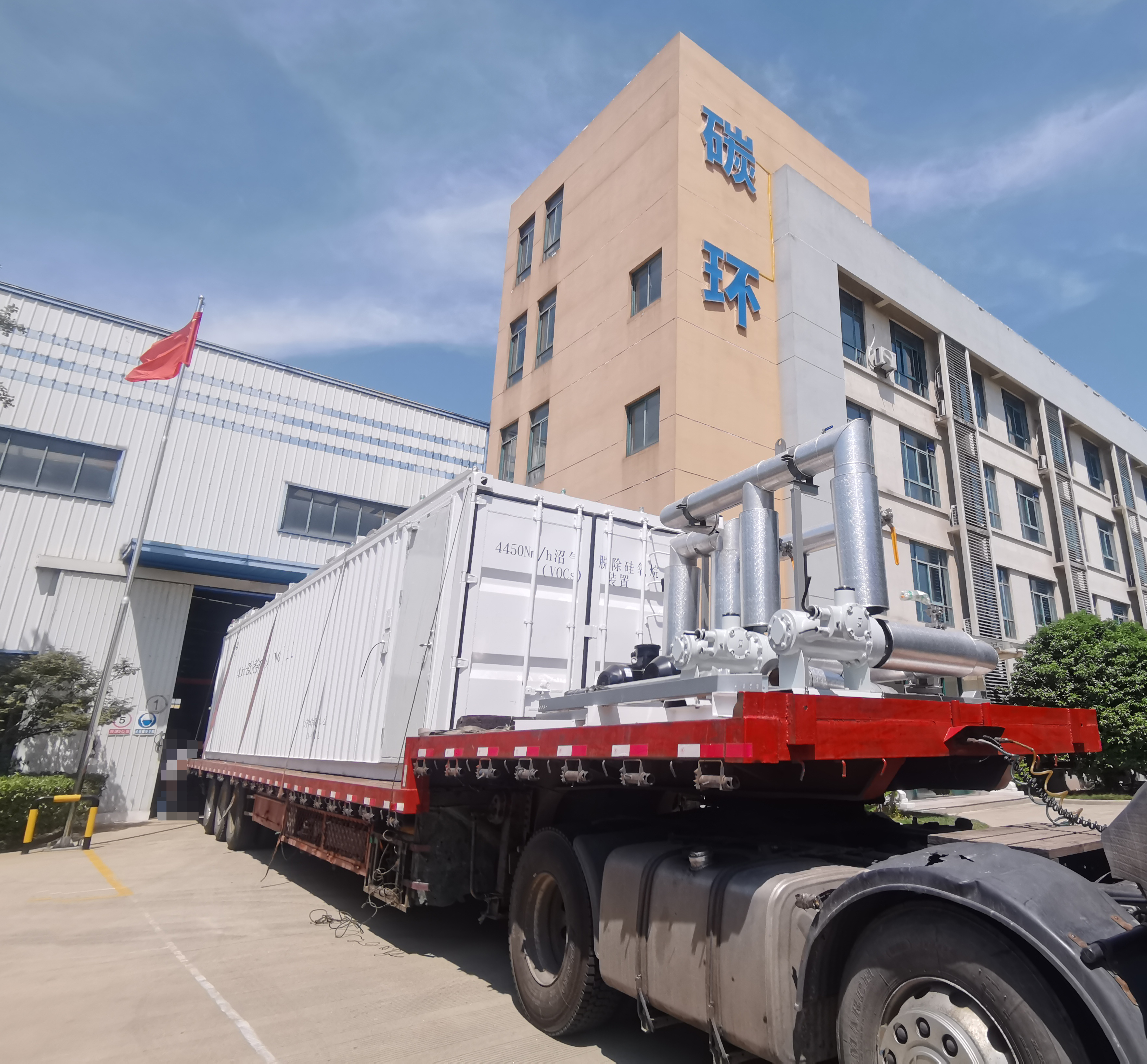 北京市高安屯污水處理廠污泥高級(jí)消化工程沼氣利用發(fā)電工程,南京碳環(huán)按照客戶需求,順利完成"沼氣脫硅氧烷系統(tǒng)設(shè)備"裝車發(fā)貨。